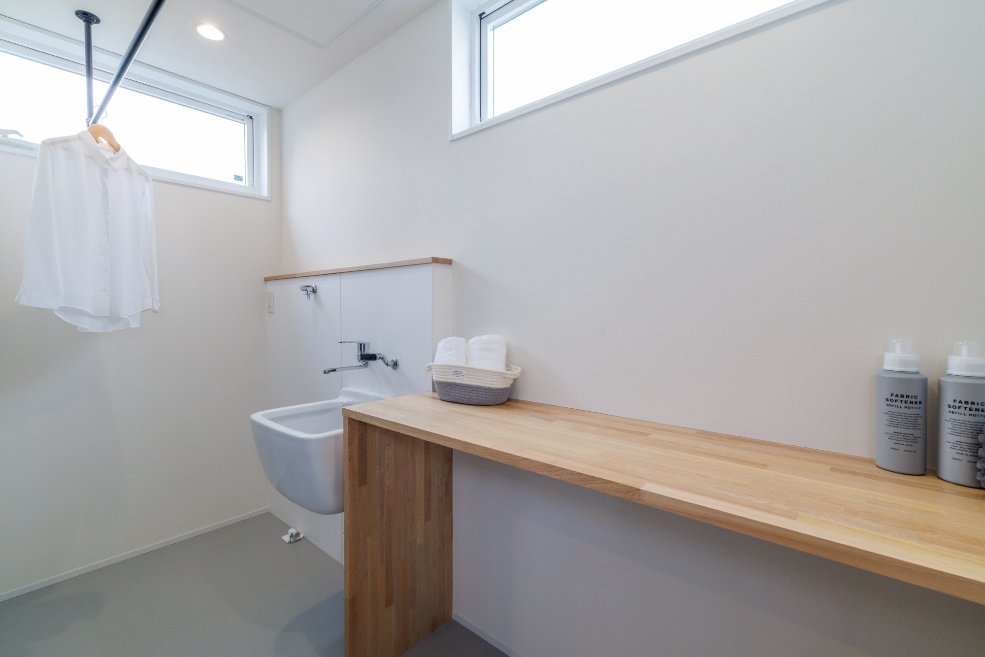リブランドでは、脱衣室とランドリールームを兼ねた省スペース設計が基本。洗濯→干す→しまうの一連の流れを1カ所で完結できるため、動線も短く、毎日の家事効率がぐんとアップします。