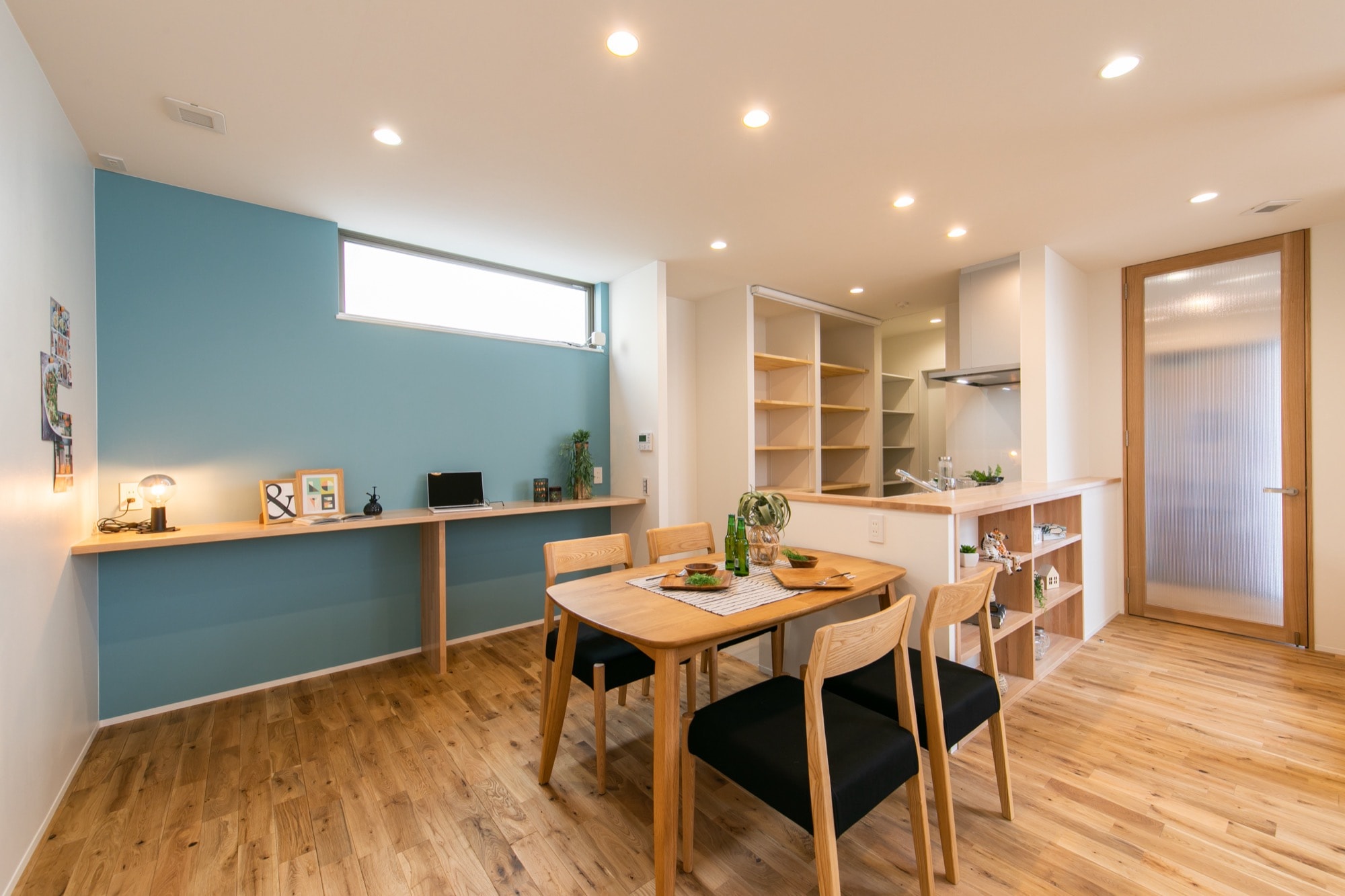 低学年のうちは特に、ひとりで集中するよりも、家族の気配がある場所の方が机に向かいやすい傾向があります。そこでおすすめなのが、リビングやダイニングの一角に設けるスタディカウンター。家事をしながら見守れる距離感があると、子どもは安心して取り組みやすくなります。