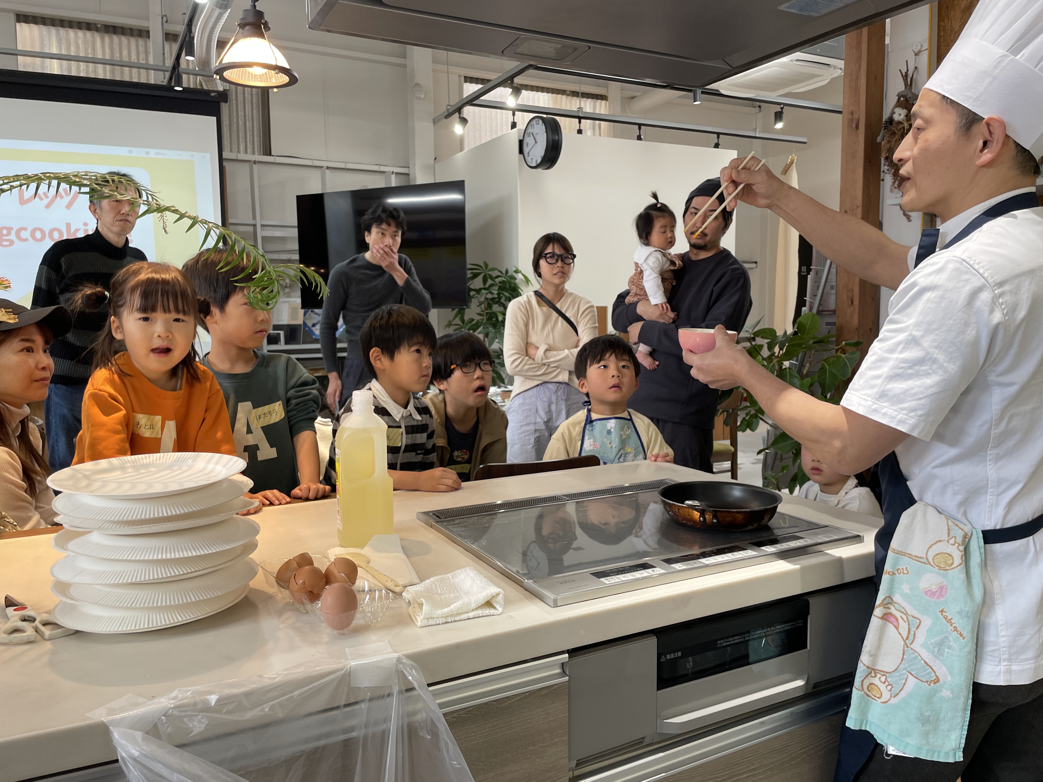 以前には店独自で「こづれ食堂hugcook」を毎月第2土曜日に開催し(現在お休み)親子でオムレツをつくりこれまで100人以上参加。